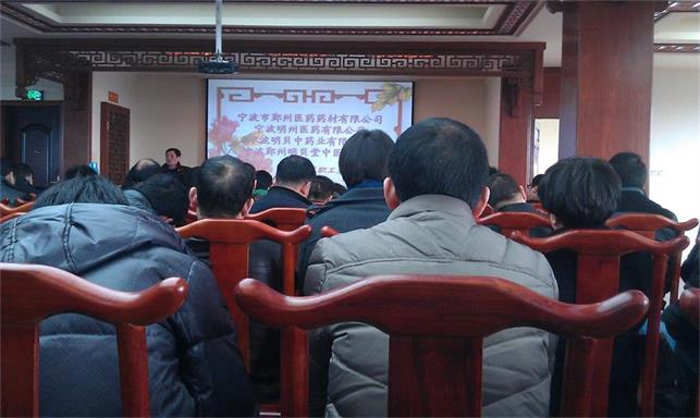 2014年1月19日下午1時整,寧波市鄞州醫藥藥材有限公司、寧波明州醫藥有限公司、寧波明貝中藥業有限公司、寧波鄞州明貝堂中醫館全體職工年終大會在公司明貝堂五樓會議廳舉行,項志秋董事長作了重要講話,大會對一年來先進工作者和優秀工作者進行了表彰。